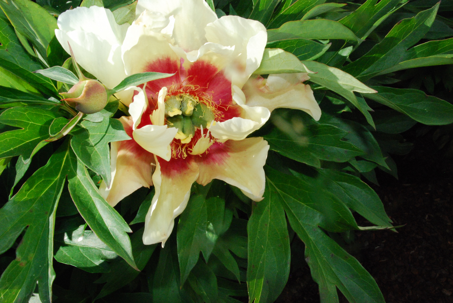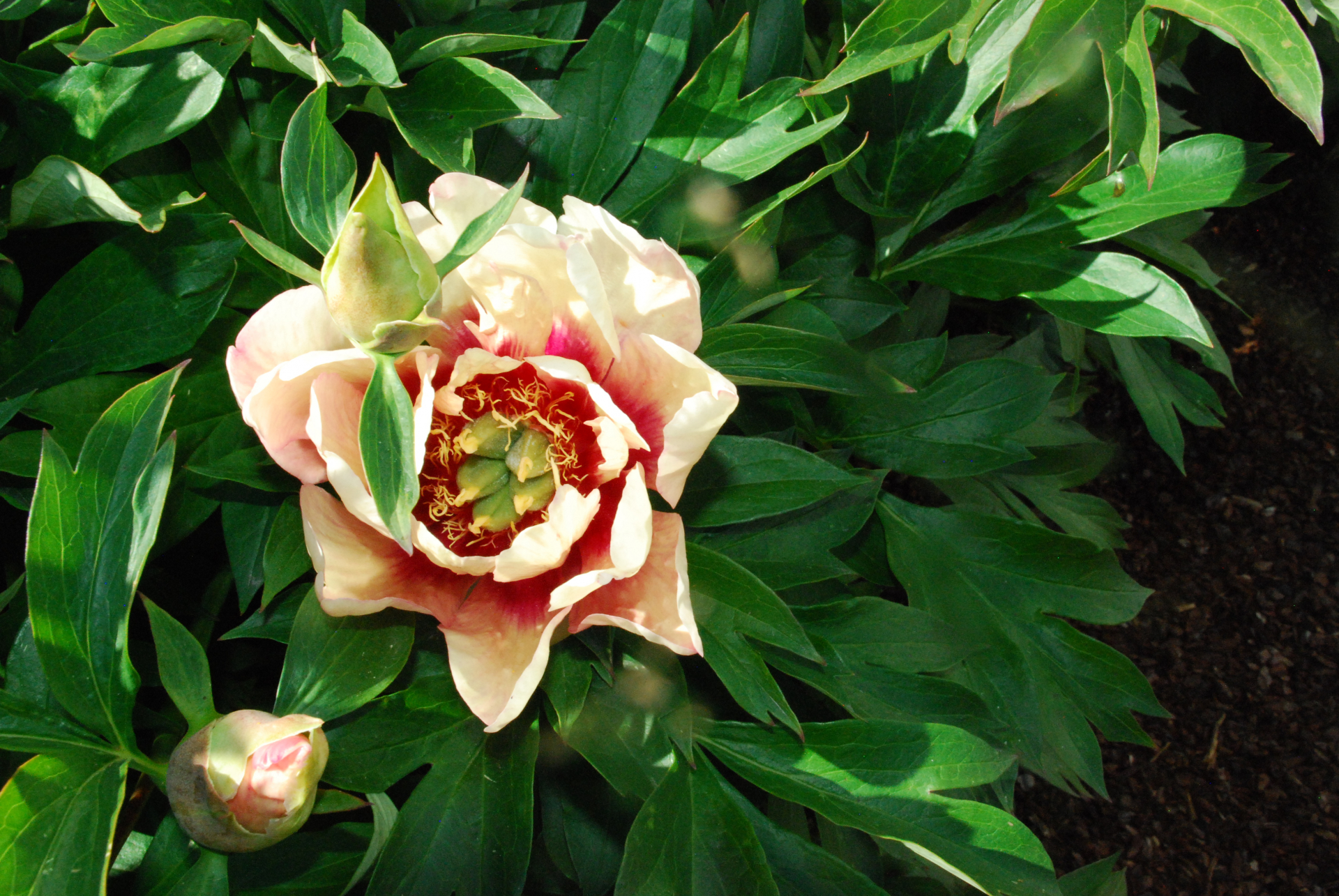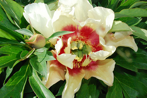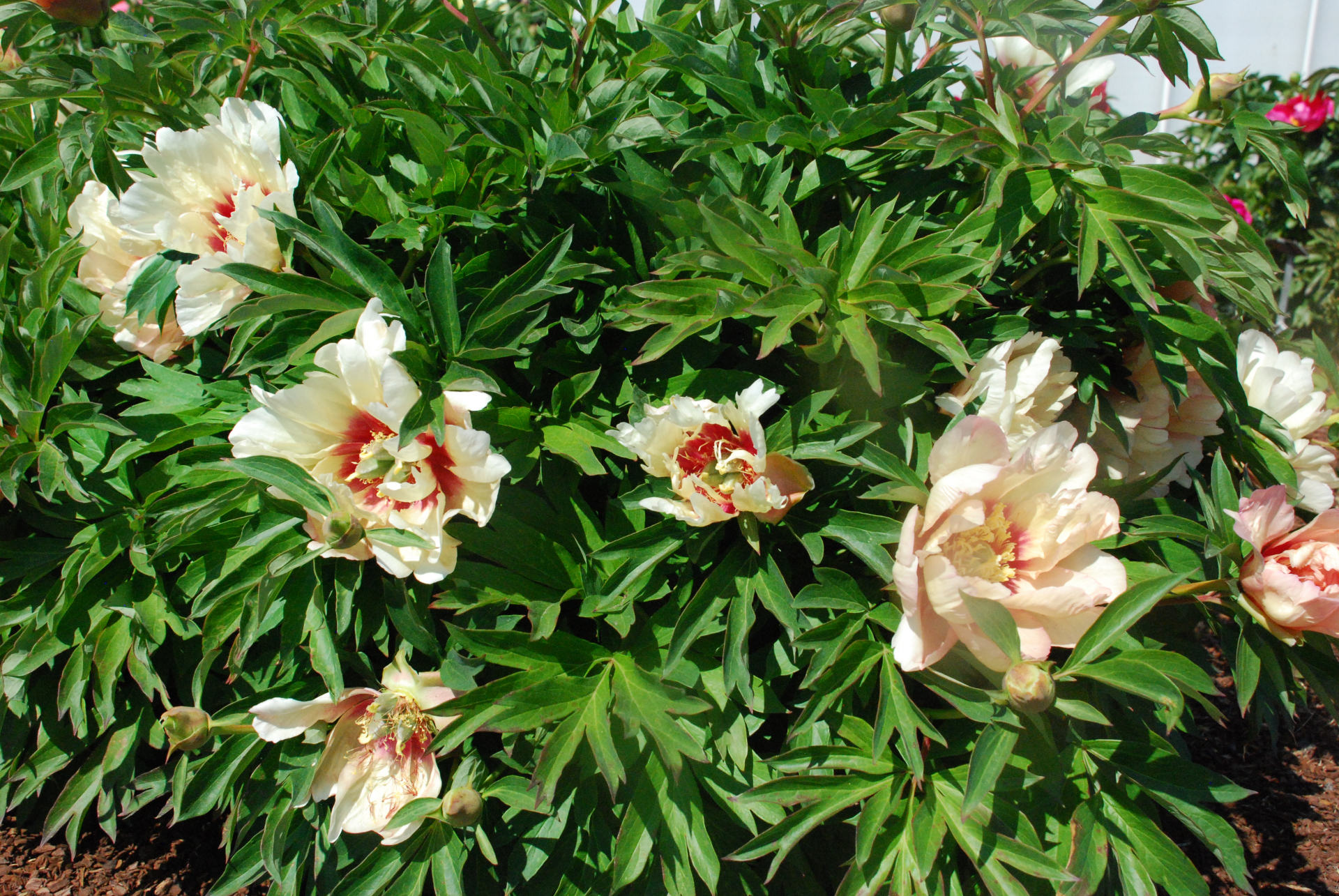Itoh with a creamy yellow color with dark red flares.