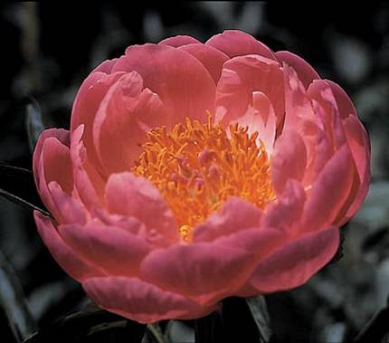 Beautiful cut flower with bowl-shaped semi-double salmon-colored flowers.